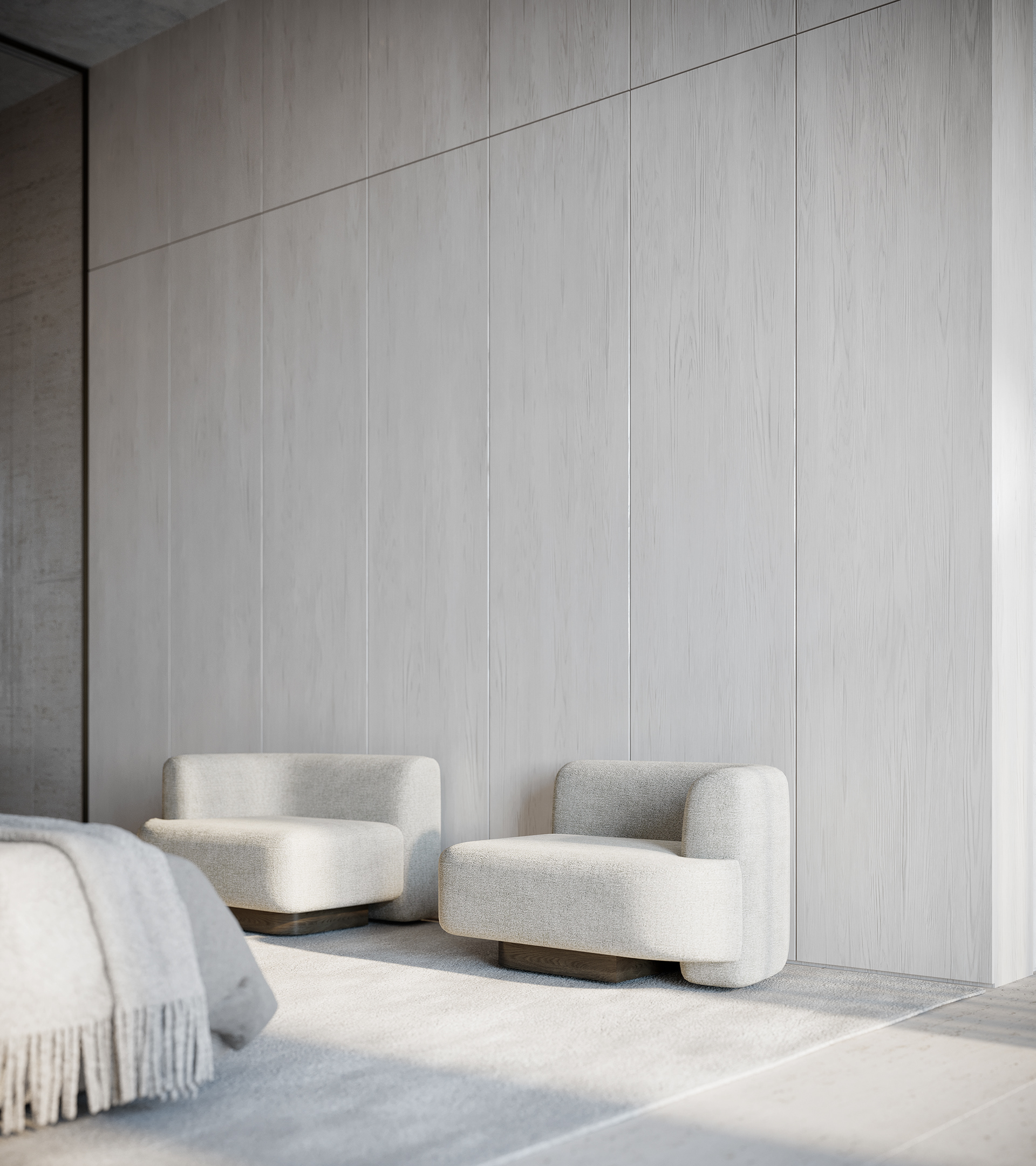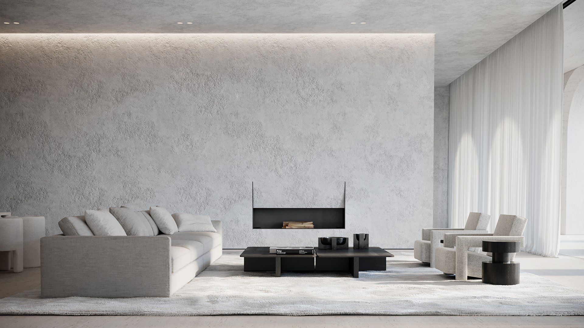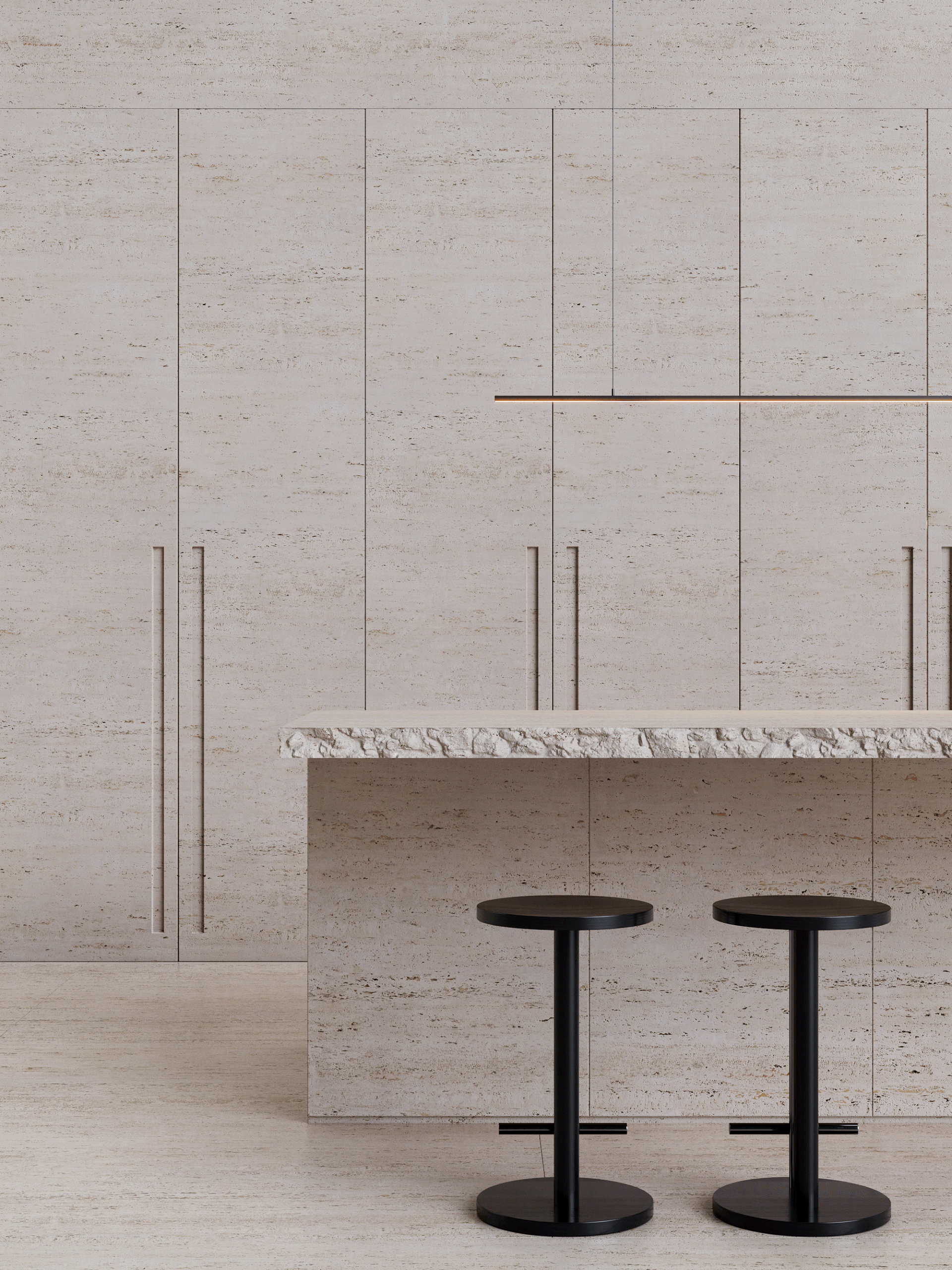 Conversion of a former warehouse in Balmain into a contemporary residential home, blending industrial character with modern design elements to create a functional and stylish living space. Concept design for an interior of refined minimalism, balancing natural stone, timber, and sculptural forms in calm harmony.